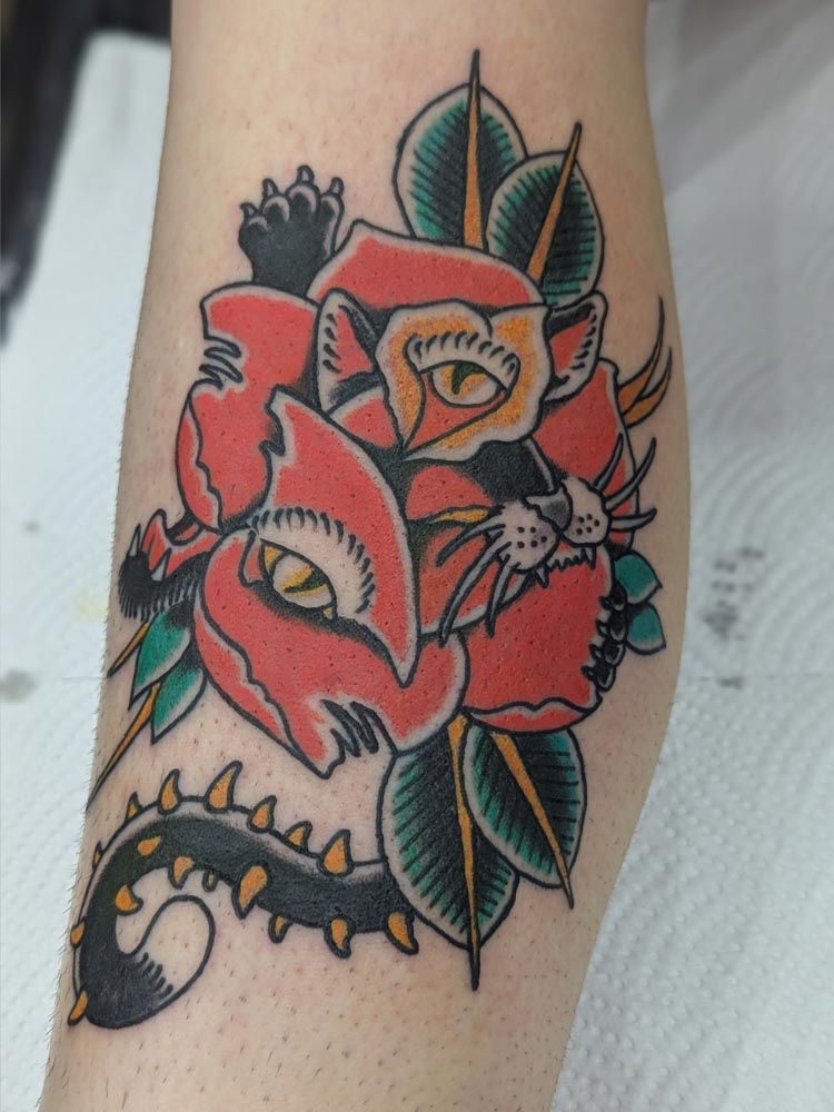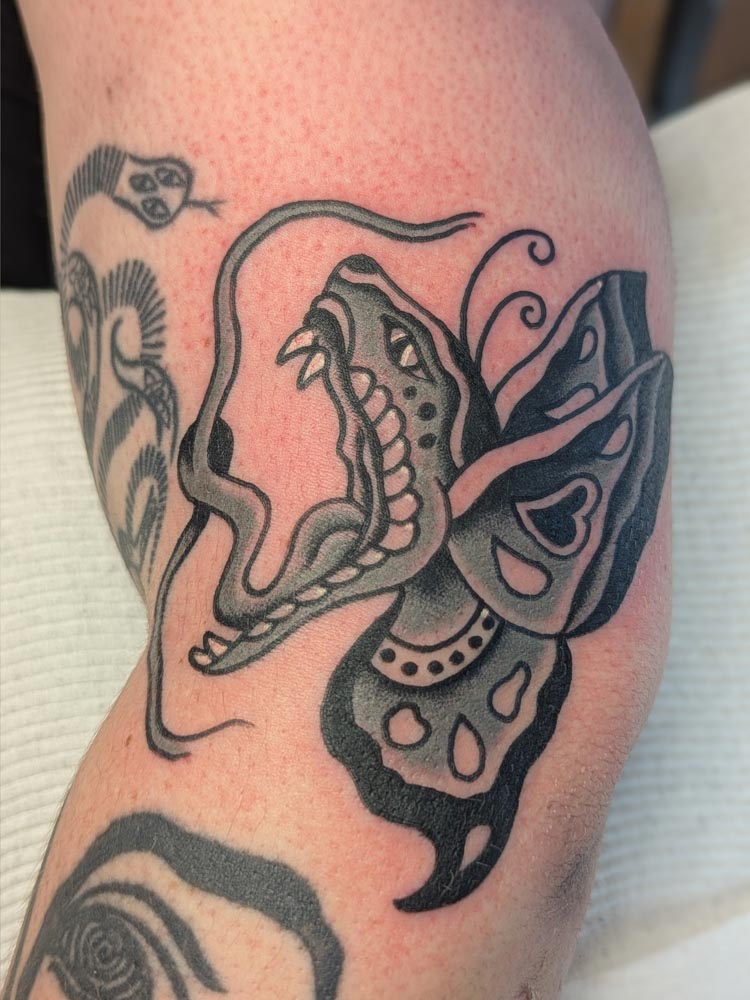 Patrick was born in Germany, travelled around a lot and tried his hands on different jobs before he found his way into tattooing 2018. After two years of apprenticeship he started working as a tattoo artist full-time in Hamburg, later in the Animal Farm in Bremen. After working there he joined Juan Pardo and Gabriel Dubko in the famous tattoo shop Born to lose live to win in Bremen. In 2025 he moved to Christchurch, Aotearoa and joined Liv Fox at her The Studio. This is where Patrick's tattoo base is now. He loves Traditional Tattoos, be it American or Japanese. He gets his inspiration through the tattoo culture and pop culture, like movies and games. He is a movie nerd and loves reading. He is always coming up with new flash designs, but is also happy to draw anything custom for you.
