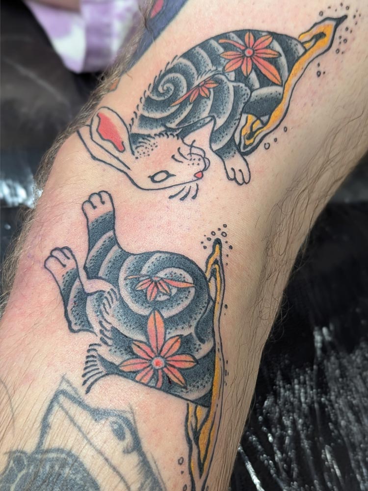 Patrick was born in Germany, travelled around a lot and tried his hands on different jobs before he found his way into tattooing 2018. After two years of apprenticeship he started working as a tattoo artist full-time in Hamburg, later in the Animal Farm in Bremen. After working there he joined Juan Pardo and Gabriel Dubko in the famous tattoo shop Born to lose live to win in Bremen. In 2025 he moved to Christchurch, Aotearoa and joined Liv Fox at her The Studio. This is where Patrick's tattoo base is now. He loves Traditional Tattoos, be it American or Japanese. He gets his inspiration through the tattoo culture and pop culture, like movies and games. He is a movie nerd and loves reading. He is always coming up with new flash designs, but is also happy to draw anything custom for you.